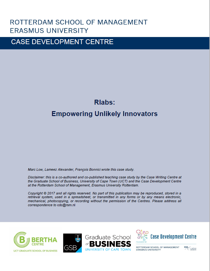 Low, M., Alexander, L., & Bonnici, F. (2014). RLabs: Empowering Unlikely Innovators. RSM Case Development Centre. Retrieved from http://hdl.handle.net/1765/124506 |