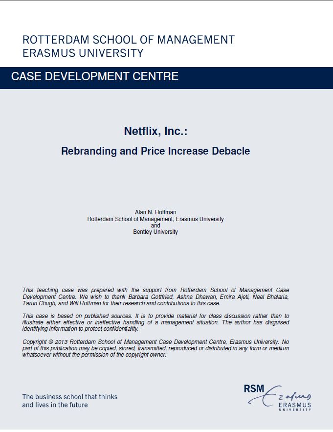 Hoffman, A. (2013). Netflix: Rebranding and Price Increase Debacle. RSM Case Development Centre. Retrieved from http://hdl.handle.net/1765/40390 |
