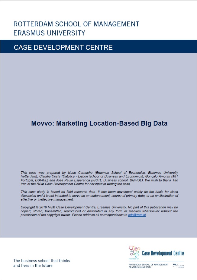 Camacho, N., Costa, C., Amorim, G., & Esperança, J. P. (2016). Movvo: Marketing Location-Based Big Data. RSM Case Development Centre. Retrieved from http://hdl.handle.net/1765/93976 |